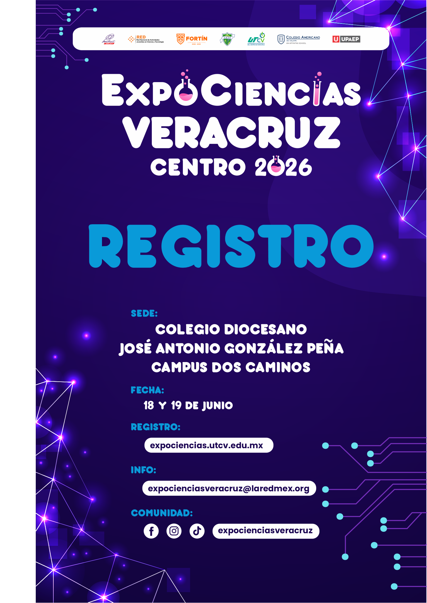 El Colegio Americano de Xalapa y la Universidad Tecnológica del Centro de Veracruz [UTCV] a través de la RED Nacional de Actividades Juveniles en Ciencia y Tecnología [LaREDMex], en conjunto con la Universidad Popular Autónoma del Estado de Puebla [UPAEP], con el respaldo del Movimiento Internacional para el Recreo Científico y Técnico de América Latina [MILSET AMLAT], en colaboración con el H. Ayuntamiento de Fortín y el Colegio Diocesano José Antonio González Peña